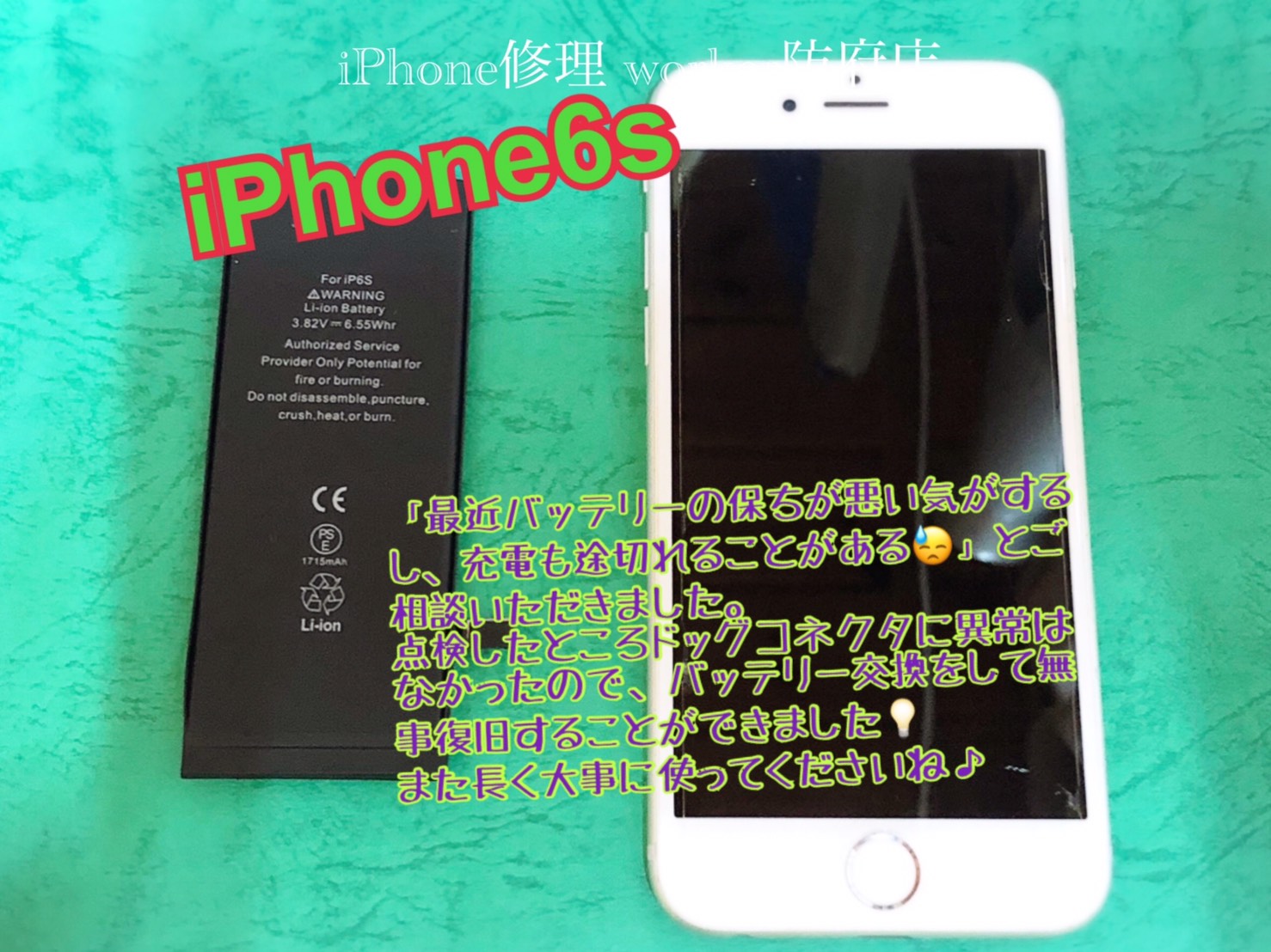 今回はiPhone6sのバッテリーの交換を致しました。