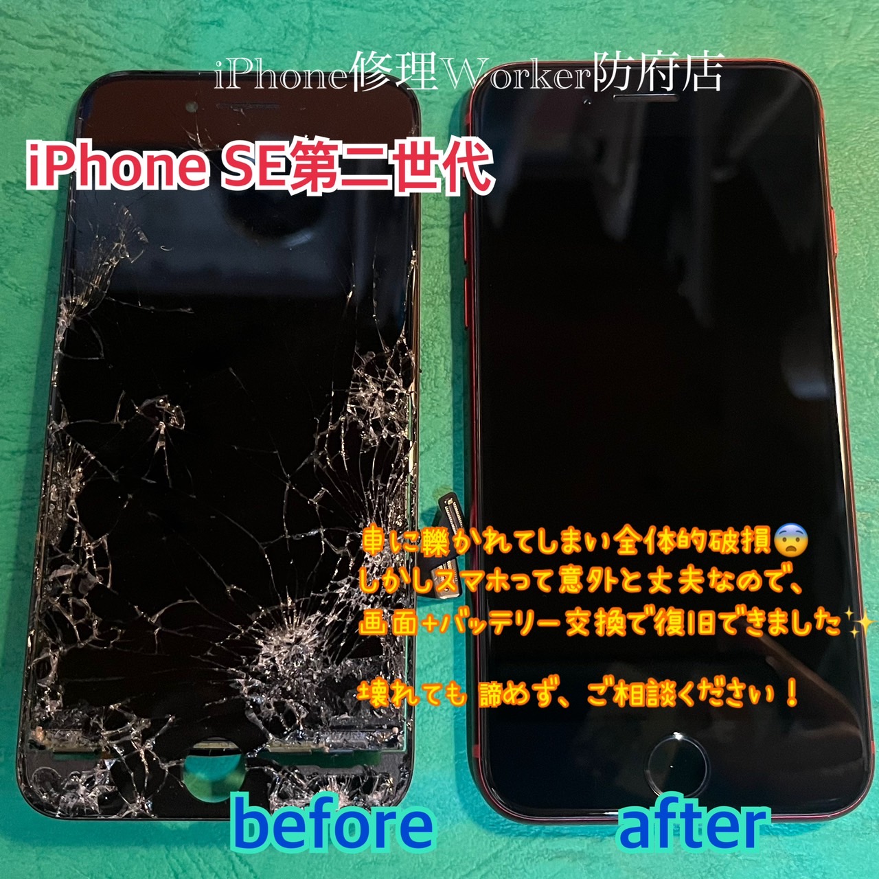先日はiPhoneSE第二世代/液晶画面修理/バッテリー交換/ガラスコーティングで防府市からご来店いただきました❗️